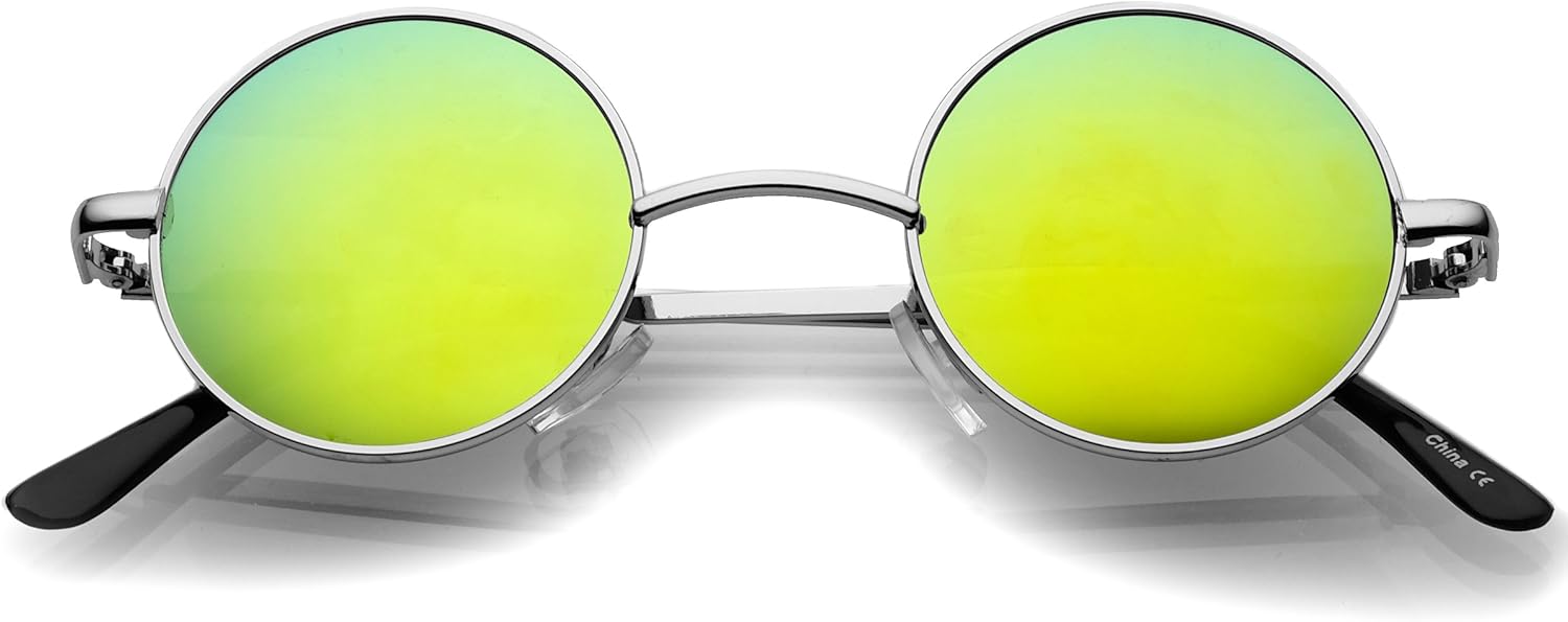 DetailsClassic round metal sunglasses that are inspired by the legendary John Lennon. Look like any 90's sunglasses based costume with these Ozzy glasses, Hippie Sunglasses, stoner glasses, disco glasses. Go for an iconic retro look this season in these Lennon style sunglasses! Made with a metal based frame, metal hinges, and colored polycarbonate LensMeasurementsLens Height: 42 mm (1.66 in)Lens Width: 42 mm (1.66 in)Bridge: 20 mm (0.79 in)Frame Width: 125 mm (4.93 in)Arm Length: 140 mm (5.52 in)We Are Inspirational EyewearAn American company based out of Huntington Beach, California, zeroUV was founded in 2001 by eyewear enthusiasts striving to bring the latest in eyewear fashion at a budget friendly price.Best Customer Service CareMeet our friendly customer service team focused on providing the best shopping experience and making every customer happy.Quality ControlWe care about how you feel about our product. Every piece of eyewear is given extra attention for quality and packaged with care before it leaves our warehouse.Price ConsciousWe are a family owned company who believes you can wear any style at a fraction of the price without compromising quality.